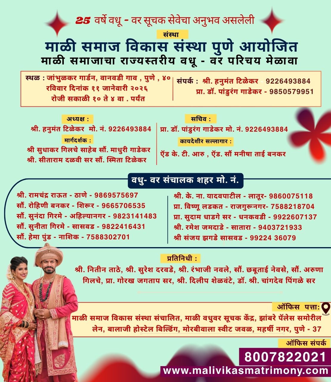 संपर्क : माळी समाज विकास संस्था संचलीत माळी वधू वर सूचक केंद्र पुणे